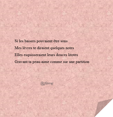 Si les baisers pouvaient être sons Mes lèvres te diraient quelques notes Elles esquisseraient leurs douces litotes Gravant ta peau-aime comme sur une partition